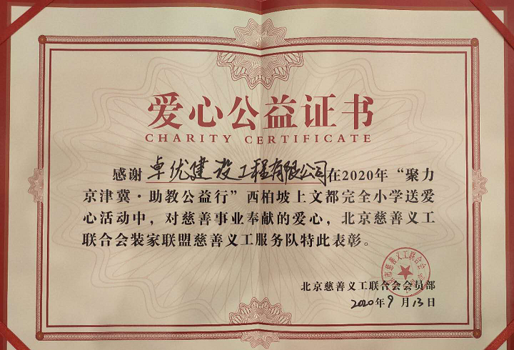 此次公益活動(dòng)是卓?jī)?yōu)建設(shè)集團(tuán)一個(gè)新的起點(diǎn),但絕不是終點(diǎn),我們會(huì)在企業(yè)社會(huì)責(zé)任的道路上不斷努力,以優(yōu)良的作為回報(bào)社會(huì),佳境漸入,實(shí)至名歸,將愛心圣火不斷的傳遞下去。